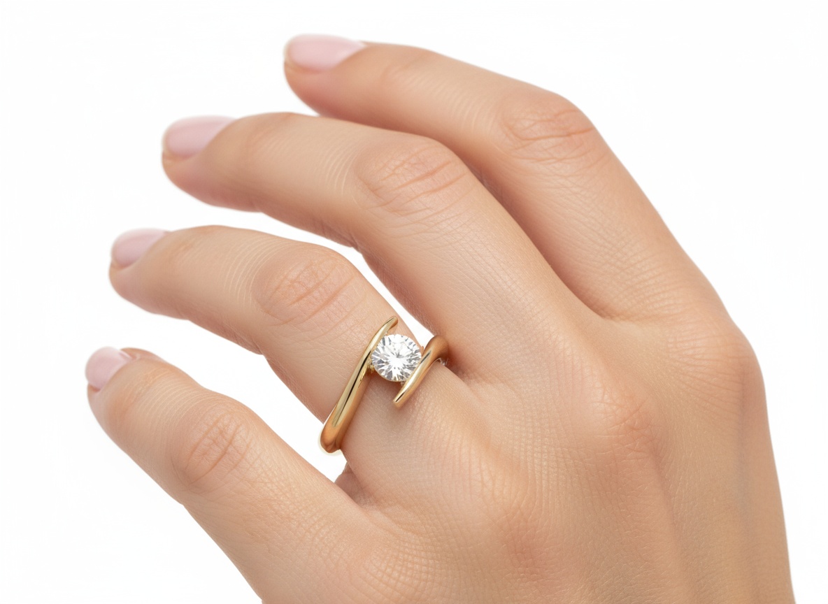 Anillo Solitario de compromiso Serpens realizado con montura al aire en movimiento de oro amarillo. Brillante central de 0.52 Quilates.
