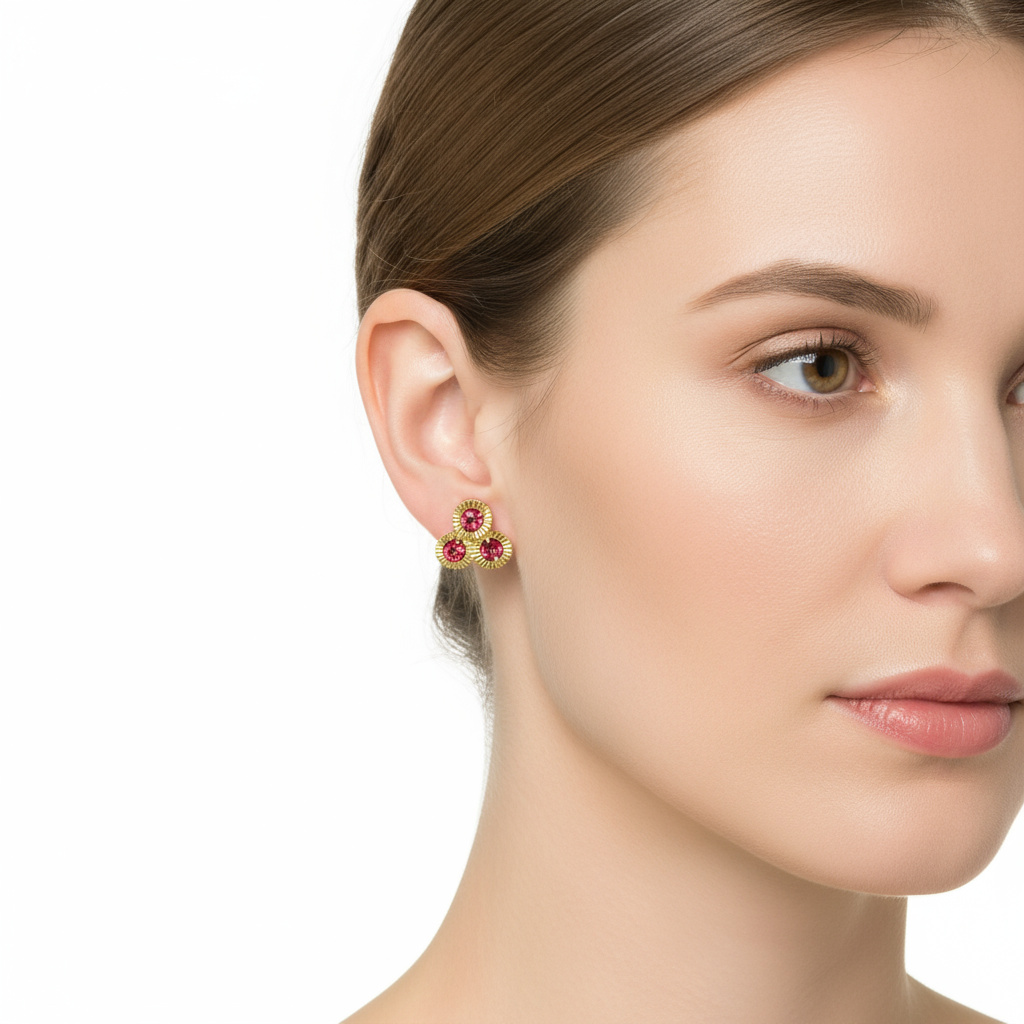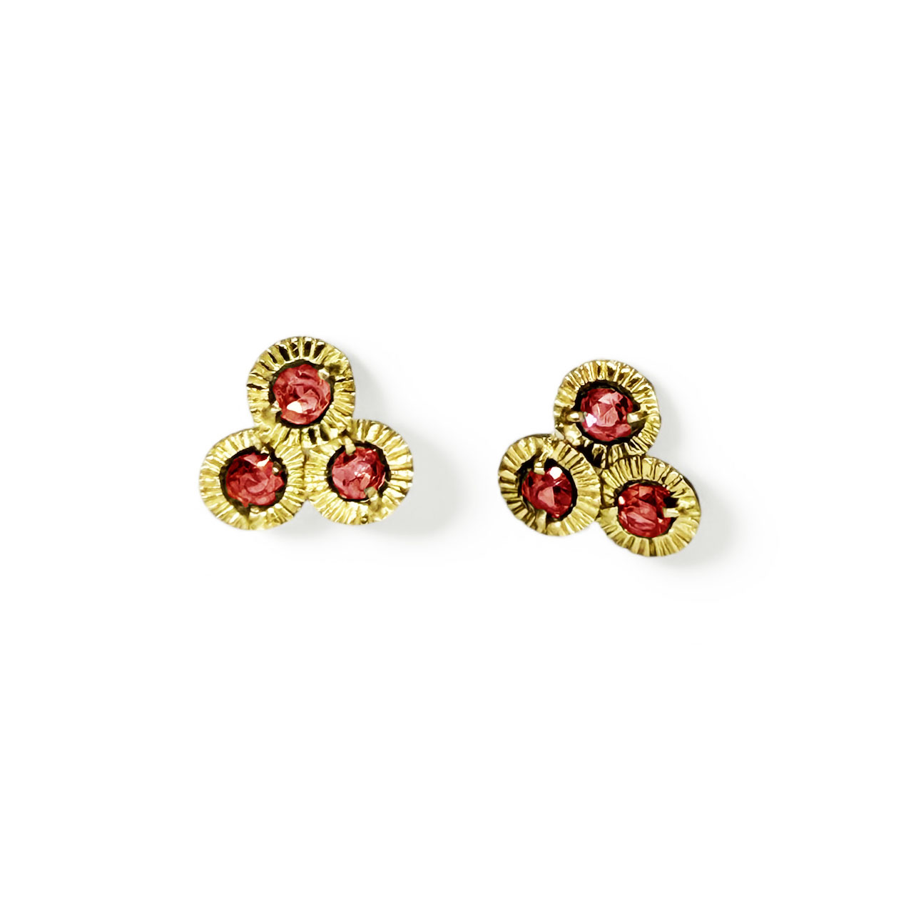 Pendientes sunny rubi realizados artesanalmente en oro amarillo gallonado en pequeña forma de sol.