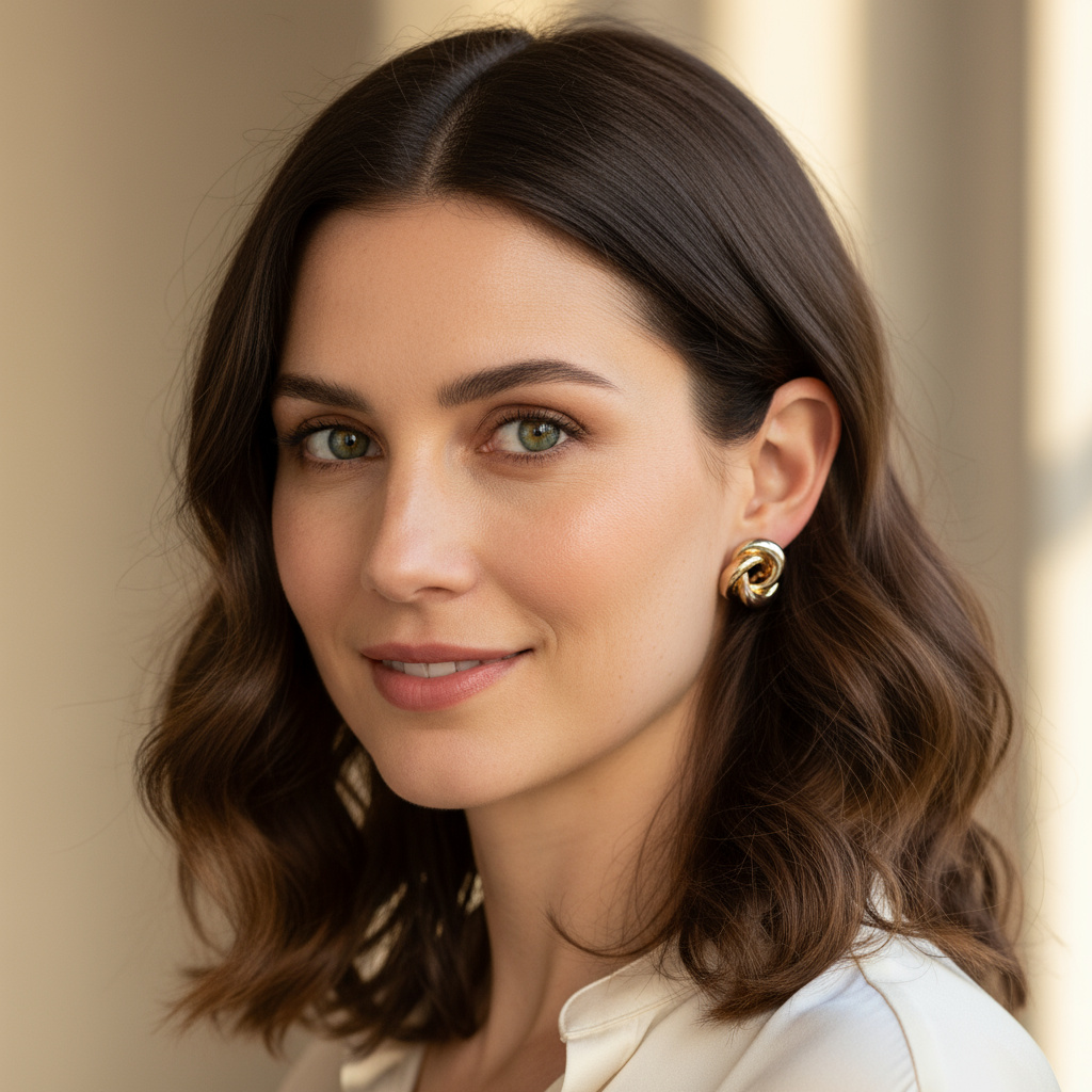 Cada pendiente consta de tres aros tipo botón, uno de cada color de oro. Estos aros están entrelazados de una manera que resalta la armonía entre los diferentes tonos de oro. La combinación de los tres colores agrega profundidad al diseño.
