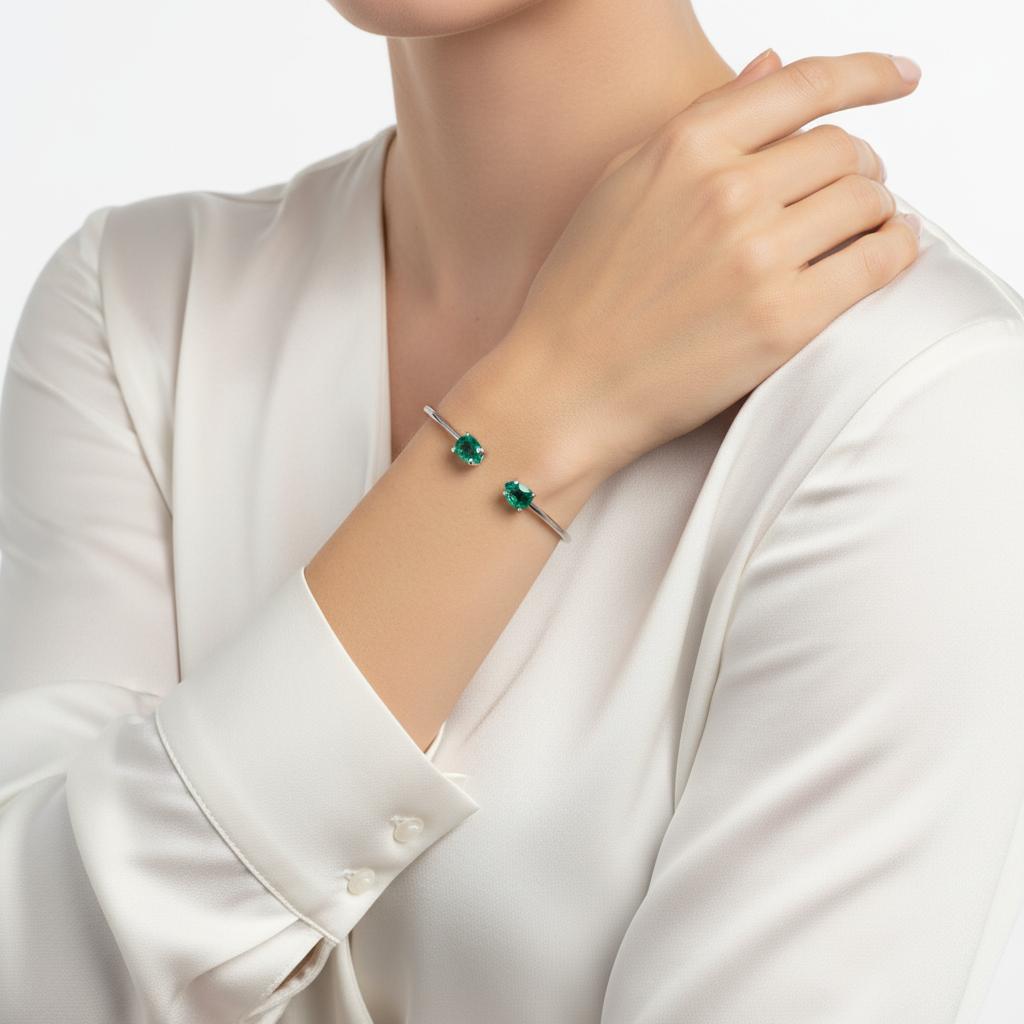 Esta pulsera es una combinación perfecta entre lo clásico y lo contemporáneo. La flexibilidad de su diseño la hace cómoda de llevar, mientras que la inclusión de las esmeraldas la convierte en una pieza que atrae miradas.
