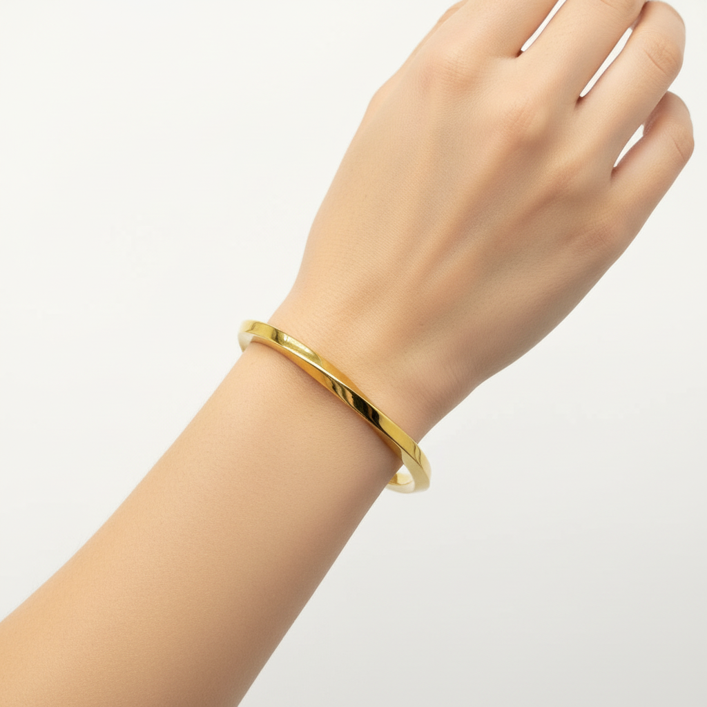 Pulsera Twist realizada artesanalmente en plata dorada.